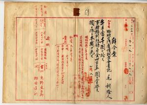 一二 退職ヲ願出タル臨時台湾旧慣調査会書記毛利隆人ニ年手当千円ヲ給シ本官ヲ免ス(秘甲第一一二三号)