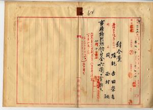 一三 通信局長角源泉ノ内申ニヨリ安平灯台事務嘱託吉田栄吉ト同西村裕ニ事務格別勉励ニ付キ一時金ヲ賞与ス(秘甲第一一三三号)