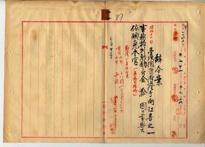 通信手向江喜之一(賞與及退官ノ件)