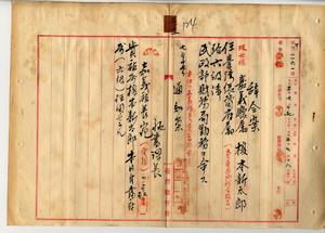 三一 財務局長中川友次郎ト嘉義庁津田毅一ノ内申ニヨリ嘉義庁属榎本新太郎ヲ台湾総督府属ニ任シ民政部財務局勤務ヲ命ス(秘甲第一一六一号)