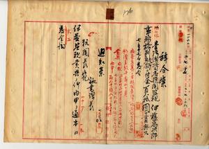 三二 淡水税関長ノ電報内申ニヨリ病気ニ罹リ危篤ニ陥リタル税関監視伊藤為次郎ニ事務格別勉励ニ付キ一時金ヲ賞与ス(秘甲第一一六二号)