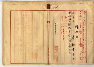 四三 通信局角源泉ノ内申ニヨリ解職シタル雇柿本チエニ事務格別勉励ニ付キ一時金ヲ賞与ス(秘甲第一一八三号)