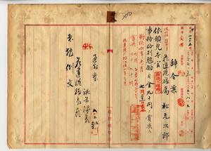 四八 転地療養ノ花蓮港庁属松元次郎ヨリ疾病ニ罹リ職ニ堪ヘサルヲ以テ辞職願出タルヲ以テ本官ヲ免シ事務格別勉励ニ付キ一時金ヲ賞与ス(秘甲第一二二五号)
