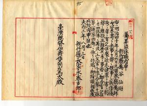 二四 新竹庁長家永泰吉郎ノ内申ニヨリ明治四〇年三月六日元苗栗庁属拝命以来専ラ兵事事務ニ従事シタル新竹庁属谷仙助ハ疾病ニヨリ職務ニ堪難キニ付キ四級俸ヲ給シ文官分限令第一一条第一項第四号ニヨリ休職ヲ命ス(秘甲第一二四一号)