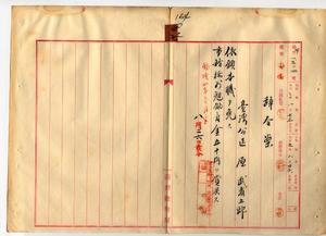 四七 疾病ニ罹リ職ニ堪ヘサルヲ以テ辞職ヲ願出タル小池角在勤台湾公医原武者五郎ニ本職ヲ免シ事務格別勉励ニ付キ一時金ヲ賞与ス(秘甲第一三〇四号)
