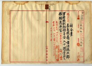 一三 嘉義庁属市川徳次郎ハ疾病ノ為メ職務ニ堪ヘ難キ旨ヲ以テ辞職願ニヨリ本官ヲ免シ事務格別勉励ニ付キ一時金ヲ賞与スルノ件(秘甲第一三五六号)