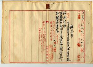 二九 台北監獄勤務監獄監吏山吉為槌ハ疾病ノ為メ辞職願ニヨリ本官ヲ免シ五俸給ニ昇級ノ上事務格別勉励ニ付キ一時金ヲ賞与スルノ件(秘甲第一三八〇号)
