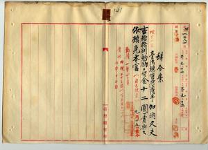 三一 台湾総督府通信手加納久夫ノ辞職願ニヨリ本官ヲ免シ事務格別勉励ニ付キ一時金ヲ賞与スルノ件(秘甲第一三八四号)