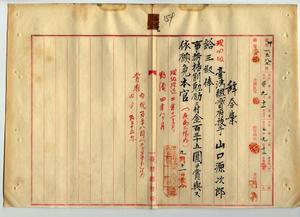 三三 台湾総督府技手山口源次郎ハ疾病ノ為メ職務ニ堪ヘ難キ旨ヲ以テ辞職願ニヨリ本官ヲ免シ土木局長心得高橋辰次郎ノ内申ニ依リ三級俸ニ昇級ノ上事務格別勉励ニ付キ一時金ヲ賞与スルノ件(秘甲第一三八七号)