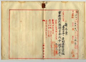 七一 台湾総督府通信局長角源泉ノ内申ニヨリ疾病ノ為メ退職願出タル台湾総督府通信工手吉田佐賀恵松ニ事務格別勉励ニ付キ一時金ヲ賞与スルノ件(秘甲第一四八七号)