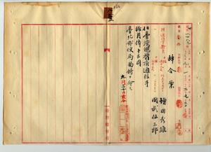 八五 台北郵便局長事務取扱藤井恭敬ノ内申ニヨリ通信事務員増田秀雄ト通信事務員兼助手国武伍三郎ヲ台湾総督府通信手ニ任シ月俸一三円ヲ給シ台北郵便局勤務ヲ命スルノ件(秘甲第一四八九号)