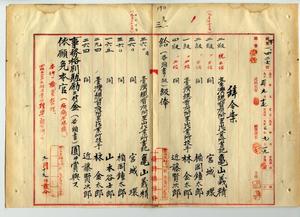 九一 台湾総督府阿里山作業所長永田正吉ノ内申ニ依リ疾病ニ依リ職務ニ堪ヘ難キ為メ辞職ヲ願出タル阿里山作業所書記ノ亀山義精・宮城環・楯岡鐘太郎、阿里山作業所技手ノ林金太郎・近藤謙次郎ハ昇級ノ上事務格別勉励ニ付キ一時金ヲ賞与シテ本官ヲ免シ、台湾総督府阿里山作業所書記山本谷士郎ハ事務格別勉励ニ付キ一時金ヲ賞与シ本官ヲ免スルノ件