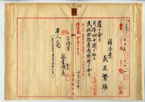 二 鹿児島高等農林学校卒業ノ長友繁雄ニ雇ヲ命シ月俸四〇円ヲ給シ民政部殖産局勤務ヲ命スルノ件(秘甲第一三九五号)