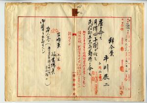 三 台湾総督府土木局長高橋辰次郎ノ内申ニヨリ熊本高等工業学校機械工学科卒業ノ平川辰二ニ雇ヲ命シ月俸四〇円ヲ給シ民政部土木局勤務ヲ命スルノ件(秘甲第一四四〇号)