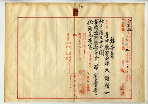 二〇 台中庁警部補大館精一ハ麻刺利亜ニ罹リ職務ニ堪ヘ難キ旨ヲ以テ辞職願ニヨリ本官ヲ免シ台中庁長枝徳二ノ内申ニヨリ月俸三三円ニ昇給ノ上事務格別勉励ニ付キ一時金ヲ賞与スルノ件(秘甲第一五二三号)