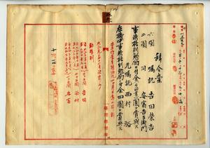 二六 台湾総督府通信局長角源泉ノ内申ニヨリ嘱託ノ吉田栄吉・安富吉左衛門ト元嘱託西村裕ニ事務格別勉励ニ付キ一時金ヲ賞与スルノ件(秘甲第一五三三号)