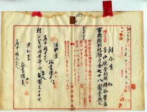 六三 台中庁警部補粕谷豊吉ハ阿緱庁蕃地捜索隊ニ応援中敵蕃ト奮闘負傷シ危篤ノ為メ事務格別勉励ニ付キ一時金ヲ賞与スルノ件(秘甲第一六一四号)