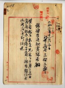七三 台湾総督府技手相原光宗ヲ新竹庁技手転任(一〇月三一日付)通知ノ件(秘甲第一五八九号)