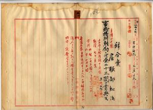 三一 台湾総督府財務局長中川友次郎ノ内申ニヨリ主計候補生トシテ入隊ノ雇服部知治ニ事務格別勉励ニ付キ一時金ヲ賞与スルノ件(秘甲第一七〇六号)