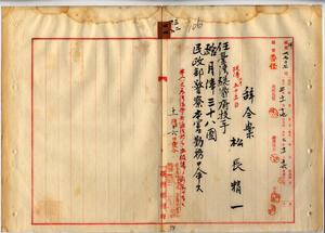 三二 台湾総督府警察本署長亀山理平太ノ内申ニヨリ元台湾総督府通信技手松長精一ニ台湾総督府技手ニ任シ月俸三八円ヲ給シ民政部警察本署勤務ヲ命スルノ件(秘甲第一七〇七号)