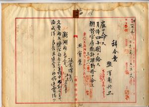 三四 台湾総督官房統計課長水科七三郎ノ内申ニヨリ元澎湖庁属塩沢角兵衛ニ雇ヲ命シ月俸四〇円ヲ給シ総督官房統計課勤務ヲ命スルノ件(秘甲第一七〇九号)