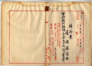 三五 台湾総督府民政部蕃務本署長亀山理平太ノ内申ニヨリ雇後藤富吉ニ事務格別勉励ニ付キ一時金ヲ賞与スルノ件(秘甲第一七一〇号)