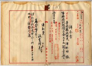 四一 台南庁長松木茂俊ノ内申ニヨリ病気退官ノ台南庁税務吏津野田猛ニ事務格別勉励ニ付キ一時金ヲ賞与スルノ件(秘甲第一七三〇号)