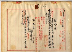 四三 阿緱庁長立川連ノ内申ニヨリ病気危篤ノ台湾公学校教諭木戸栄作ニ事務格別勉励ニ付キ一時金ヲ賞与スルノ件(秘甲第一七三六号)