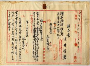 二 台湾神社宮司山口透ノ内申ニヨリ皇典講究所学階五等学正ヲ受ケ祭式科修了ノ室井常磐ニ台湾神社主典ニ補シ月俸三五円ヲ給スルノ件(秘甲第一六六〇号)