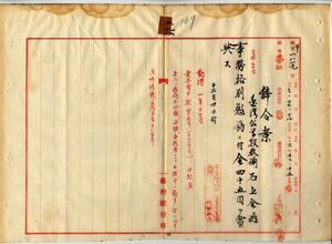 二六 南投庁長石橋亨ノ内申ニヨリ麻刺里亜ニ罹リ退官願出ノ台湾公学校教諭石上金治ニ事務格別勉励ニ付キ一時金ヲ賞与スルノ件(秘甲第一八一九号)