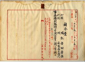 三五 台湾総督府通信局長角源泉ノ内申ニヨリ安平灯台事務嘱託吉田栄吉ト安富吉左衛門ニ事務格別勉励ニ付キ一時金ヲ賞与スルノ件(秘甲第一八五〇号)