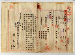 五 潘玉山・蘇朝金・羅金水・蔡戇・施白川・巫俊・萩原徳太郎・天野益蔵・陳阿貴・游礼堂・黄敦仁・大谷源吉ヘ南投庁埔里社堡水頭庄接続地官有原野開墾予約貸付ノ件(指令第三五〇八二号・指令第六九六号・民地第三七一二号)五-一 南投庁埔里社堡水頭庄接続地官有原野予約開墾貸付許可ヲ埔里社電灯株式会社ヘ譲渡ノ件(指令第六九六号・民地第三五八六号)