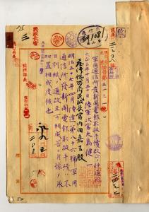 三 従軍ノ許可ヲ得タル新聞通信員ヨリ軍用通信所ニ託スル新聞電報ニ係ル軍用通信所発新聞電報取扱手続改正ノ件(民通第二三〇八号)
