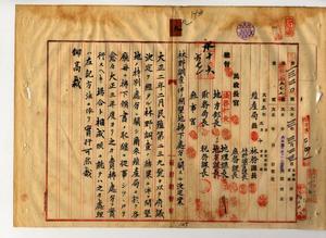 九 林野調査ニ伴フ開墾地払下処分ニ関スル決定案及ヒ林野調査ニ伴フ開墾地払下処分ニ関スル図簿引継方各庁ヘ通達並ニ開墾地払下ニ関シ台南庁長ヘ通達ノ件(民殖第一三二〇号)