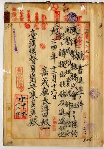 一三 嘉義庁嘉義西堡南靖庄ノ東洋製糖株式会社取締役社長下坂藤太郎ヨリ出願ノ嘉義庁下茄苳南堡安渓藔庄土名下藔ノ官有原野予約売渡ノ件許可並ニ予約開墾成功地売渡請書提出ノ件(指令第三〇九七〇号・第三七九一〇号・民殖第五七二九号)