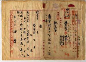 一 台南庁管内開墾地払下ニ関スル件(殖林第二七三〇号)及ヒ林野調査ノ結果特別処分ニ依リ人民ヘ払下相成ベキ土地ニ関スル件(殖林第二七六号)・開墾地払下願訂正再調ノ分送付ノ件(殖林第一〇四号)・楠梓仙渓西里■(艹+王)莱宅庄ニ於ケル台南製糖株式会社及ヒ同庄渡瀬寅次郎ノ観音内里姑婆藔庄荘順願書送付ノ件(殖林第一七六号)・善化里西堡曽文庄胡鉄ナル者ノ土地ニ関スル件(殖林第一九二号)・内新化南里南庄張連海同庄劉氏省開墾地払下願及ヒ阿緱庁羅漢内門里内埔庄陳明達保管林許可願ニ関スル件(殖林第二一六号)・効忠里安平街陳檛外一一通開墾地払下願書一覧送付ノ件(殖林第二三七号)・林野調査ノ結果ニ依ル払下予定地茅港尾東堡南廍庄ニ係ル開墾地払下願ノ件(殖林第二五五六号)一括取扱ノ件(民殖第五三〇八号)