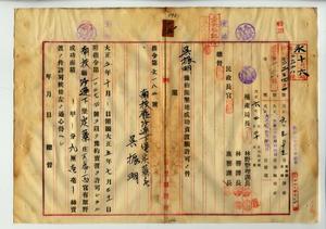 吳振明豫約開墾地賣渡願許可ノ件