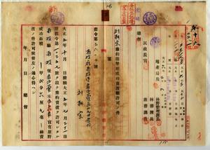 劉朝宗豫約開墾地賣渡許可願ノ件