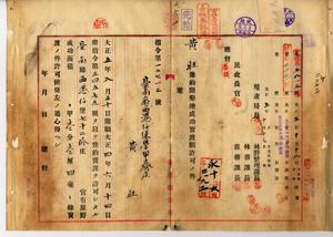 黃旺官有原野豫約開墾成功賣渡願許可ノ件