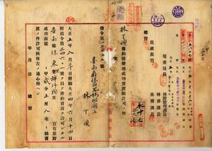 林丁順官有原野開墾成功地賣渡願許可ノ件