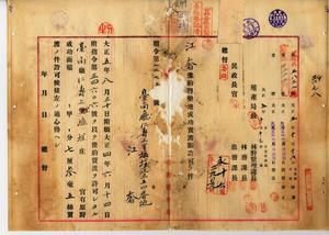 江奢官有原野開墾成功地賣渡願許可ノ件