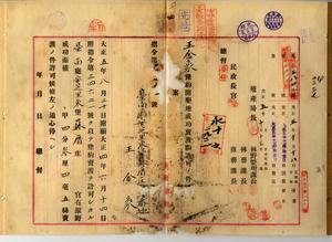 王金象官有原野開墾成功地賣渡願許可ノ件