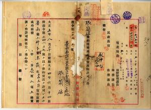 張簡官有原野開墾成功地賣渡願許可ノ件