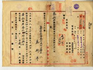 蔡新年豫約開墾地成功賣渡願許可ノ件