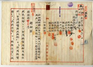 〔今回敕令第三百九十三號ヲ以テ當府官制改正ニ伴ヒ從來發布シタル府令等改正案〕(府令第百二十號)、〔本令ハ發布ノ日ヨリ之ヲ施行ス〕(訓令第百六十八號)