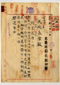 警察協會花蓮港支部長ヘ地方稅所屬地貸下