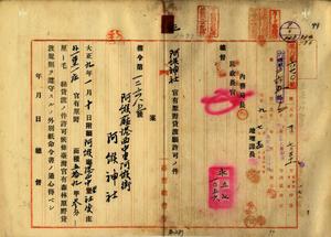 阿緱神社官有原野貸渡願許可ノ件