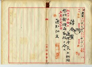〔通信手〕矢上純雄(臺北郵便局勤務ヲ命ス)