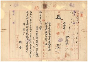 私立台灣基督長老教台南神學校設立認可ノ件(キヤンべル、エン、ム-デ-)