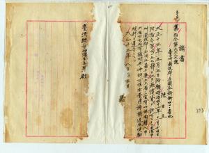 陳甘立樟樹造林無償貸付許可地所有權附與許可ニ對シ請書提出ニ付進達(臺中州知事)